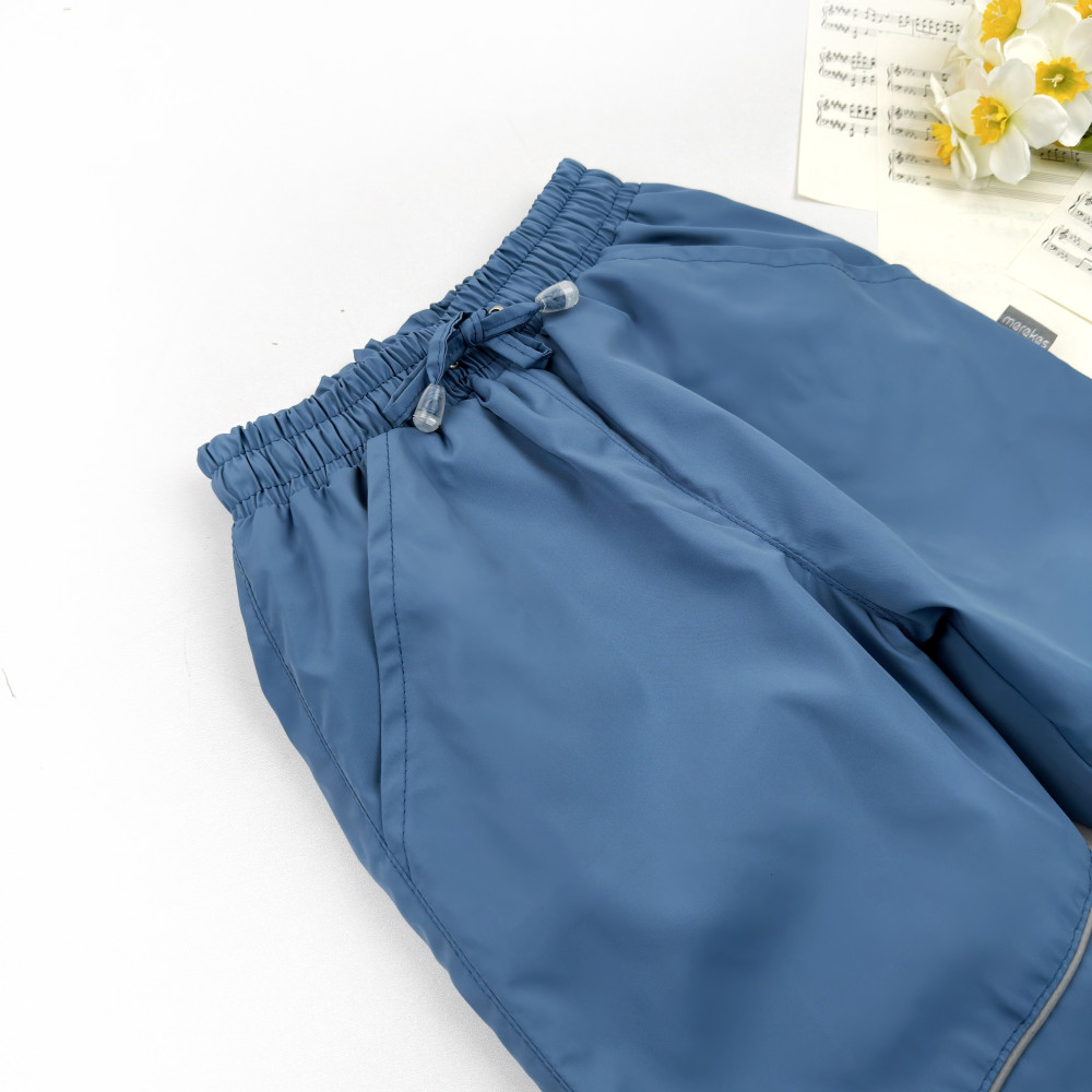 Деми штаны на нейлоне Marakas™ имеют резинку со шнурком, карманы и светоотражающие элементы: ребенку комфортно, маме спокойно.