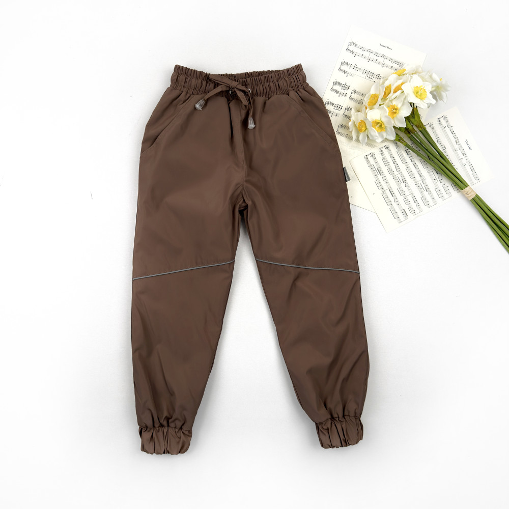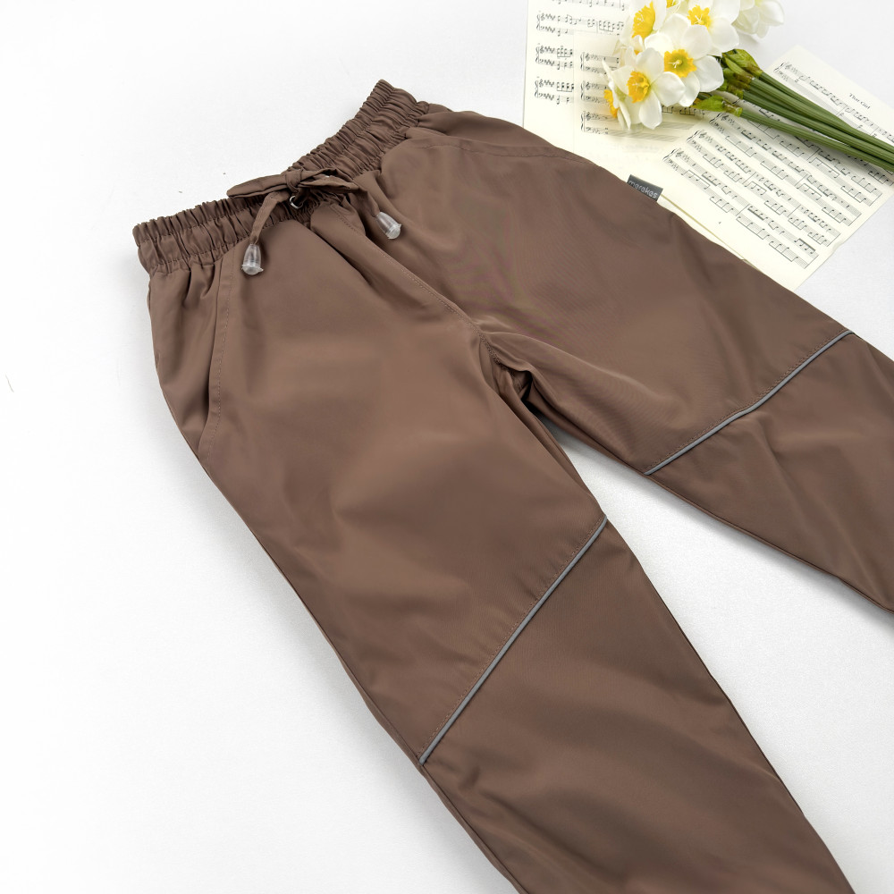Деми штаны на нейлоне Marakas™ имеют резинку со шнурком, карманы и светоотражающие элементы: ребенку комфортно, маме спокойно.