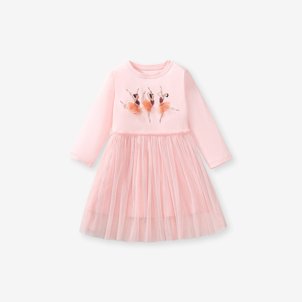 Деталі: ліф прикрашений чарівним принтом з балеринами. Пишна спідниця з ніжно-рожевого фатина перетворює сукню на справжнє вбрання для маленької принцеси.